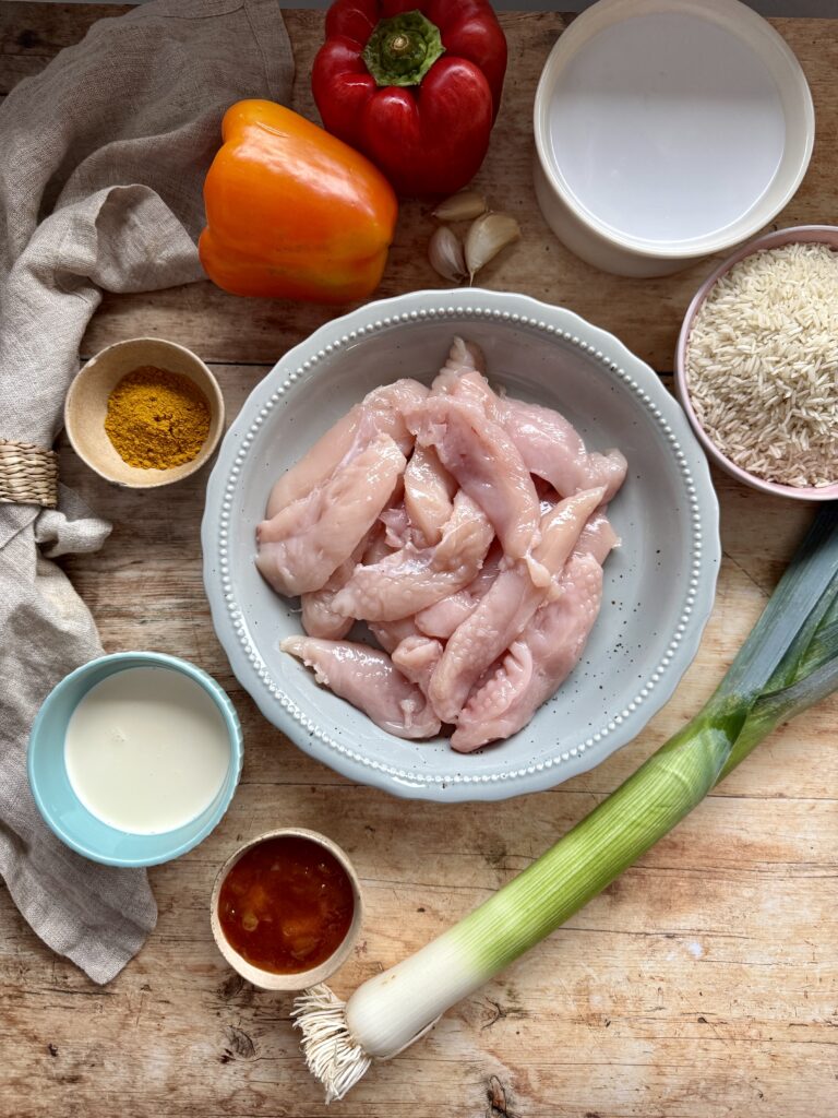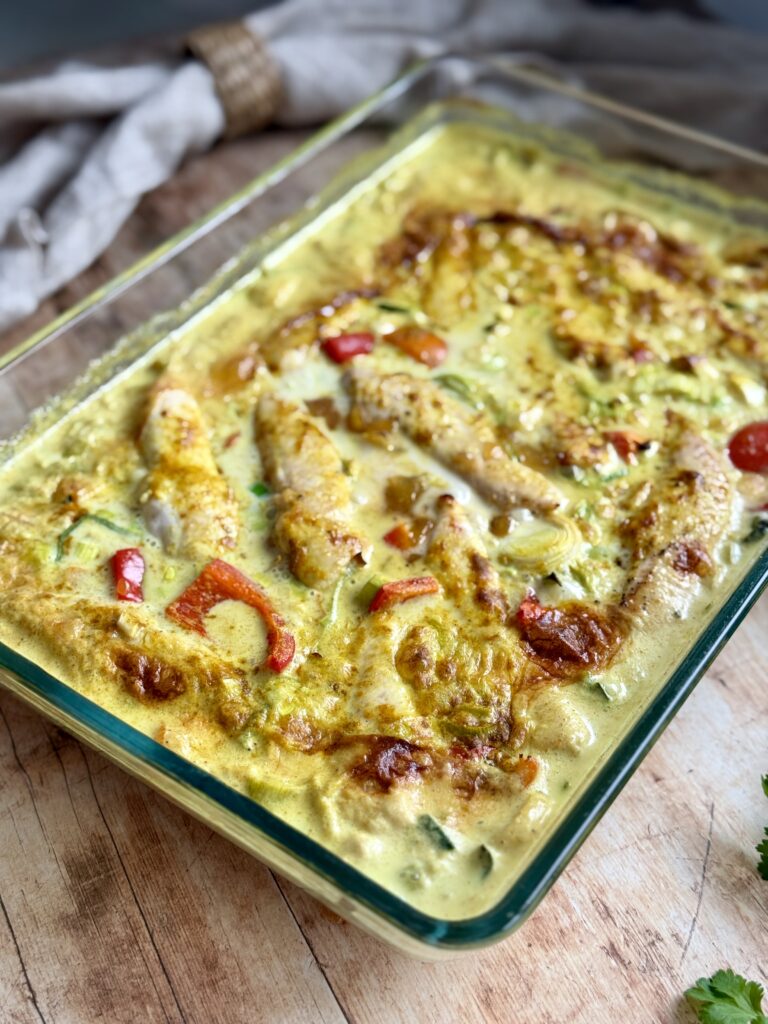 Kombinationen af karry og kokosmælk giver en let krydret, men stadig mild smag, som de fleste kan lide – også de små. Du kan tilpasse styrken efter smag, og grøntsagerne kan varieres alt efter, hvad du har i køleskabet. Brug fx peberfrugt, gulerødder, squash, broccoli eller hvad du nu har liggende. Det er en fleksibel opskrift, der kan tilpasses sæson og smag.