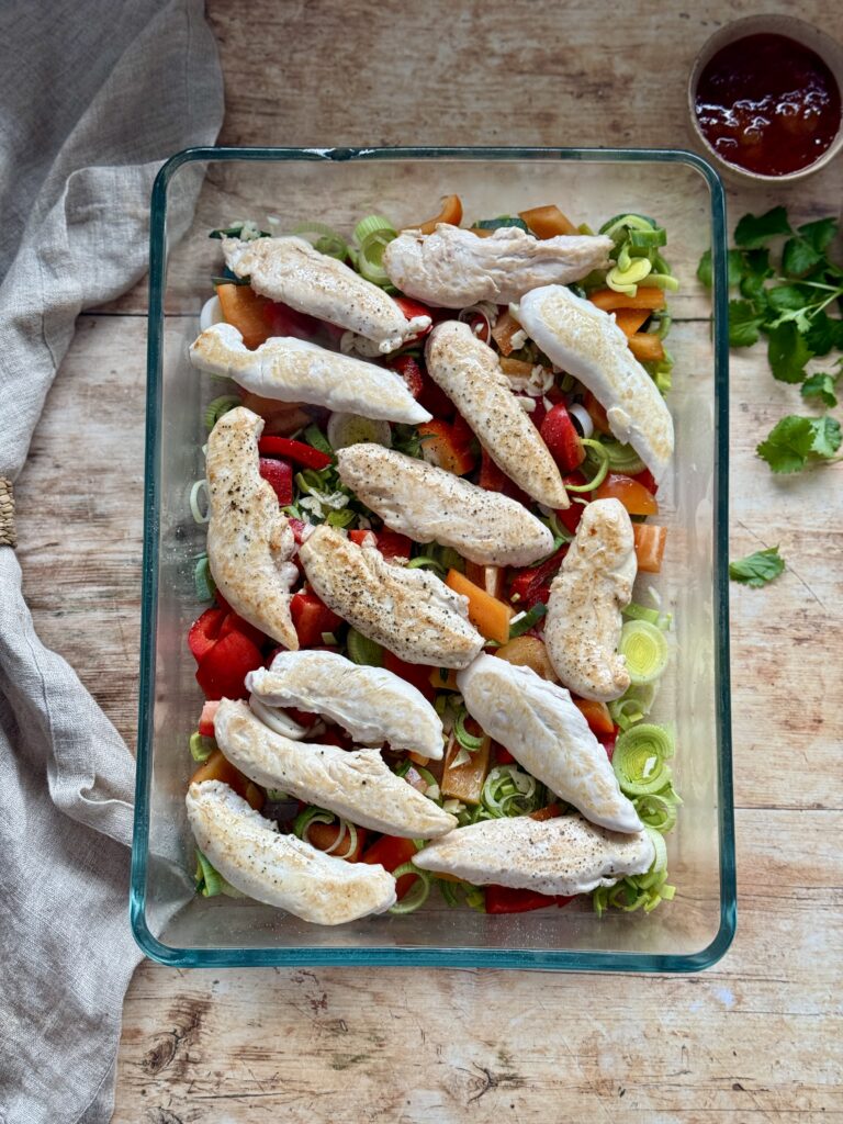 - Bag i ovnen i ca. 20 min til kyllingen er færdigstegt