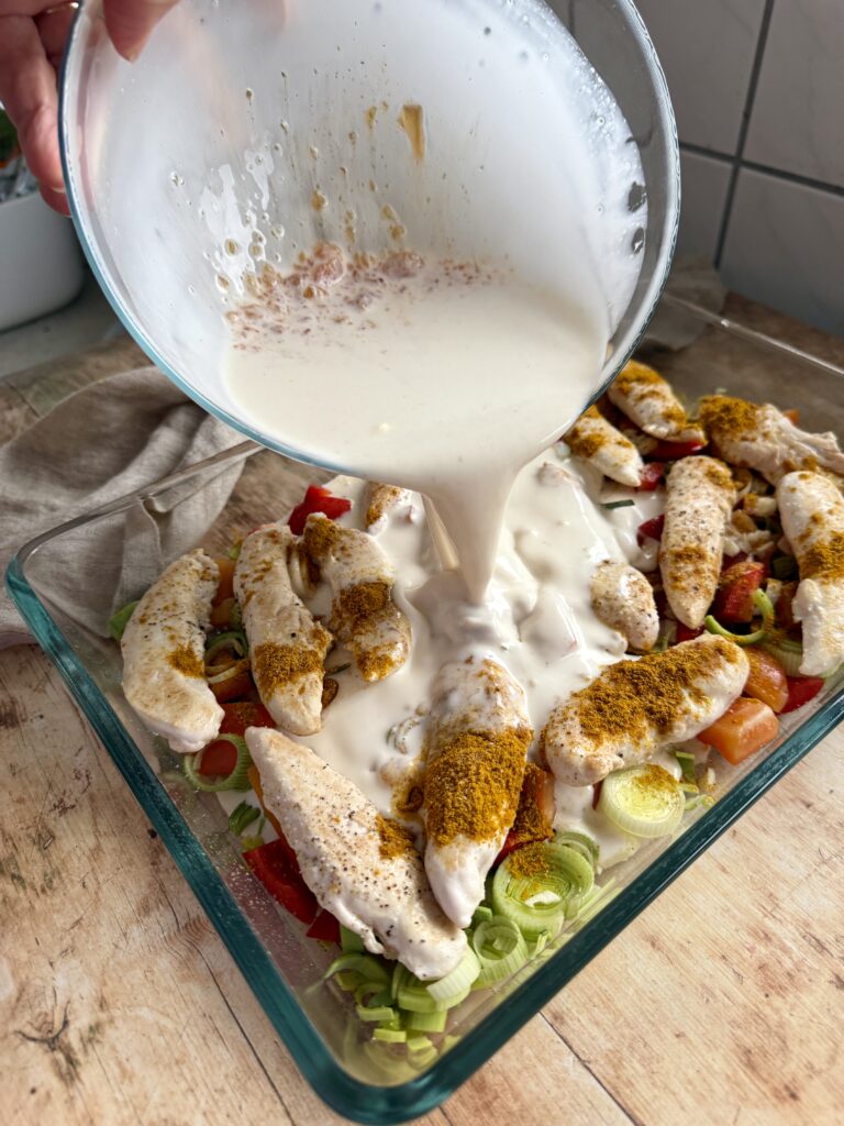 Kylling i fad med karry er en nem ret, som smager fantastisk. Her får du alt det gode samlet i ét fad: saftig kylling, masser af farverigt grønt og en skøn, cremet sauce med smag af mild karry og kokos, som spreder varme og hygge i hele køkkenet.