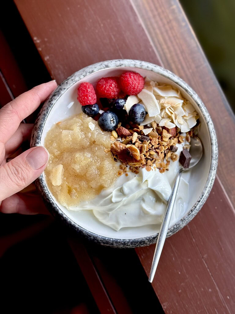 Denne lækre kompot med sæsonens frugt (æble og pære) lavede jeg i forbindelse med et event hos Ren Lykke. Jeg stod for mad til hele dagen. Til morgenmad lavede jeg et lækkert ‘tag selv bord’ med græsk yoghurt, hjemmelavet granola https://madmusen.dk/2024/11/06/sproed-granola-musli/ , hindbær og blåbær, ristede kokosflager og så denne lækre æble og pærekompot.