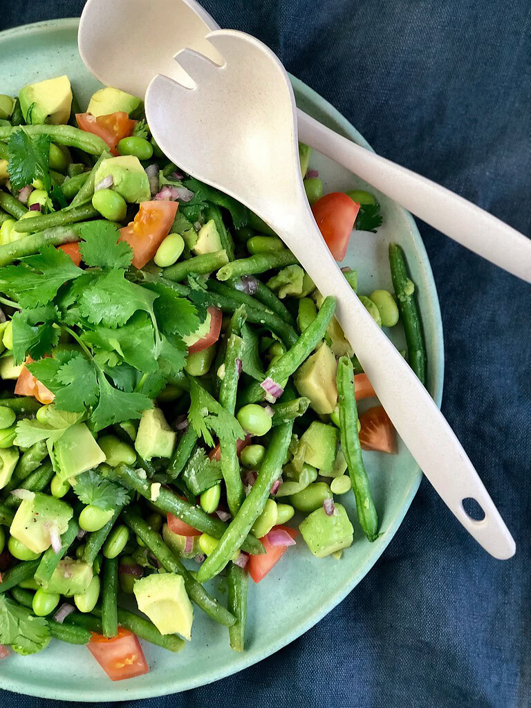Jeg elsker at afprøve nye kombinationer til salater og gerne nogen med gode mættende ingredienser som eks. bønner. Denne her bønnesalat med både grønne bønner og edamame bønner er utrolig lækker og nem at lave.