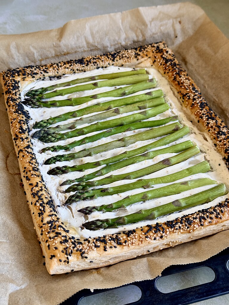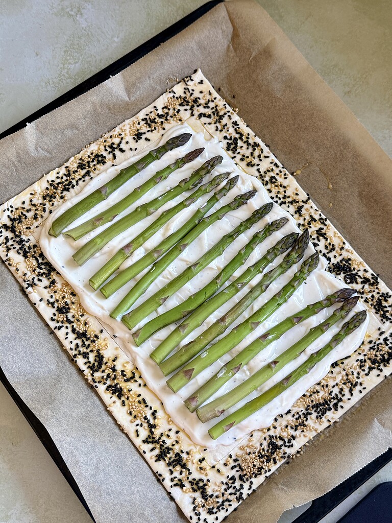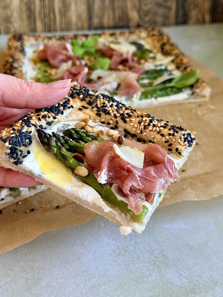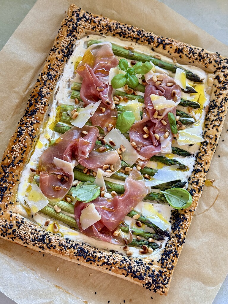 Jeg har tidligere lavet en åben butterdejstærte, nemlig den populære butterdejstærte med laks, så nu får I en forårsinspireret udgave med friske grønne asparges. Jeg vælger at toppe den med lidt skiver prosciutto, men den kan også sagtens serveres uden kød. Den fungerer godt som en forret eller en snack. Hvis du vælger at serverer den som en snack, så vil jeg anbefale dig, at du skærer den i mindre stykker.