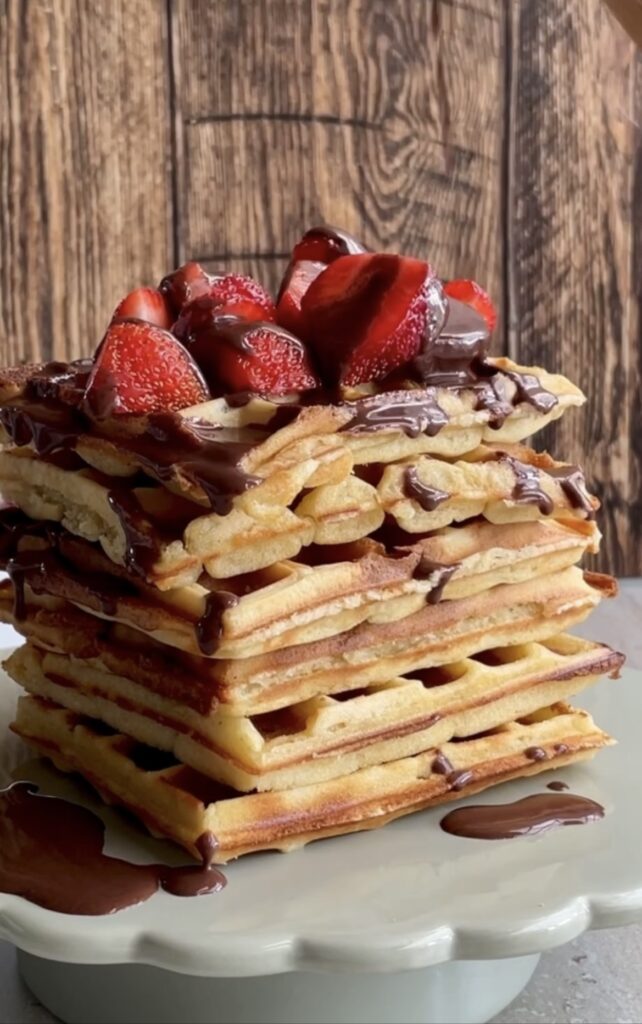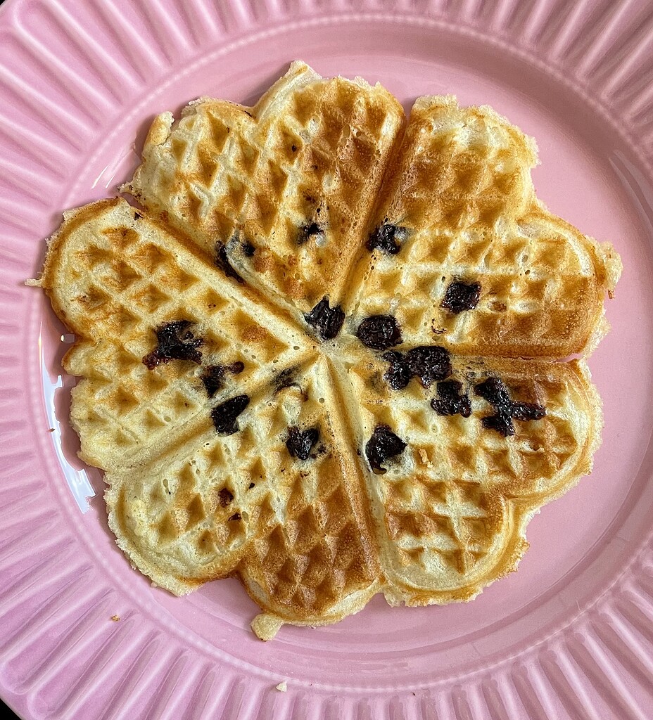 Wow, efter at have lavet de her belgiske vafler, er det gået op for mig – at jeg har spist alt for lidt af den slags. De er nemlig sprøde længe efter bagning og samtidig svampede. Vi gik all in og serverede dem med is, frugt og hjemmelavet chokoladesovs (piskefløde og chokolade).