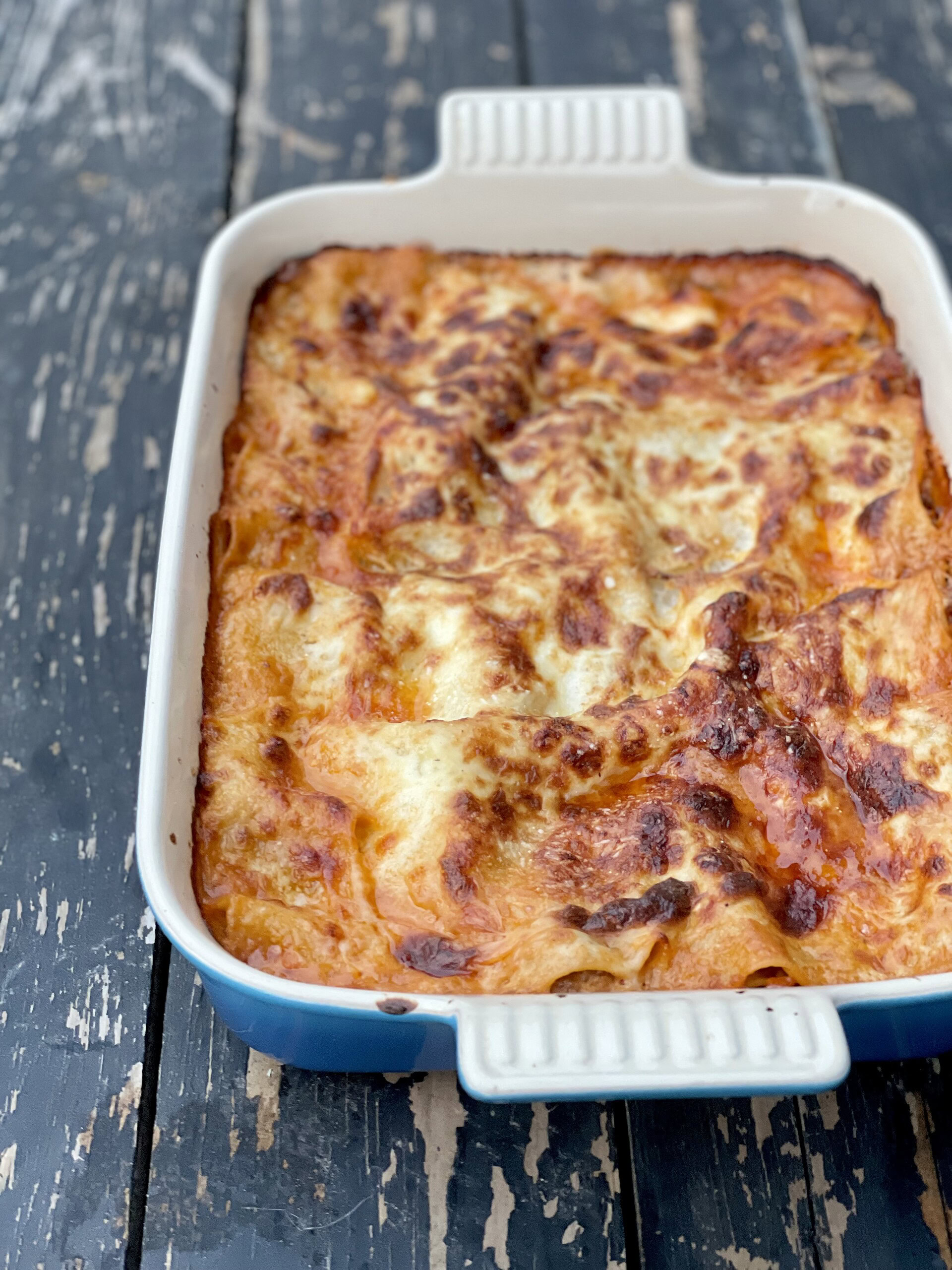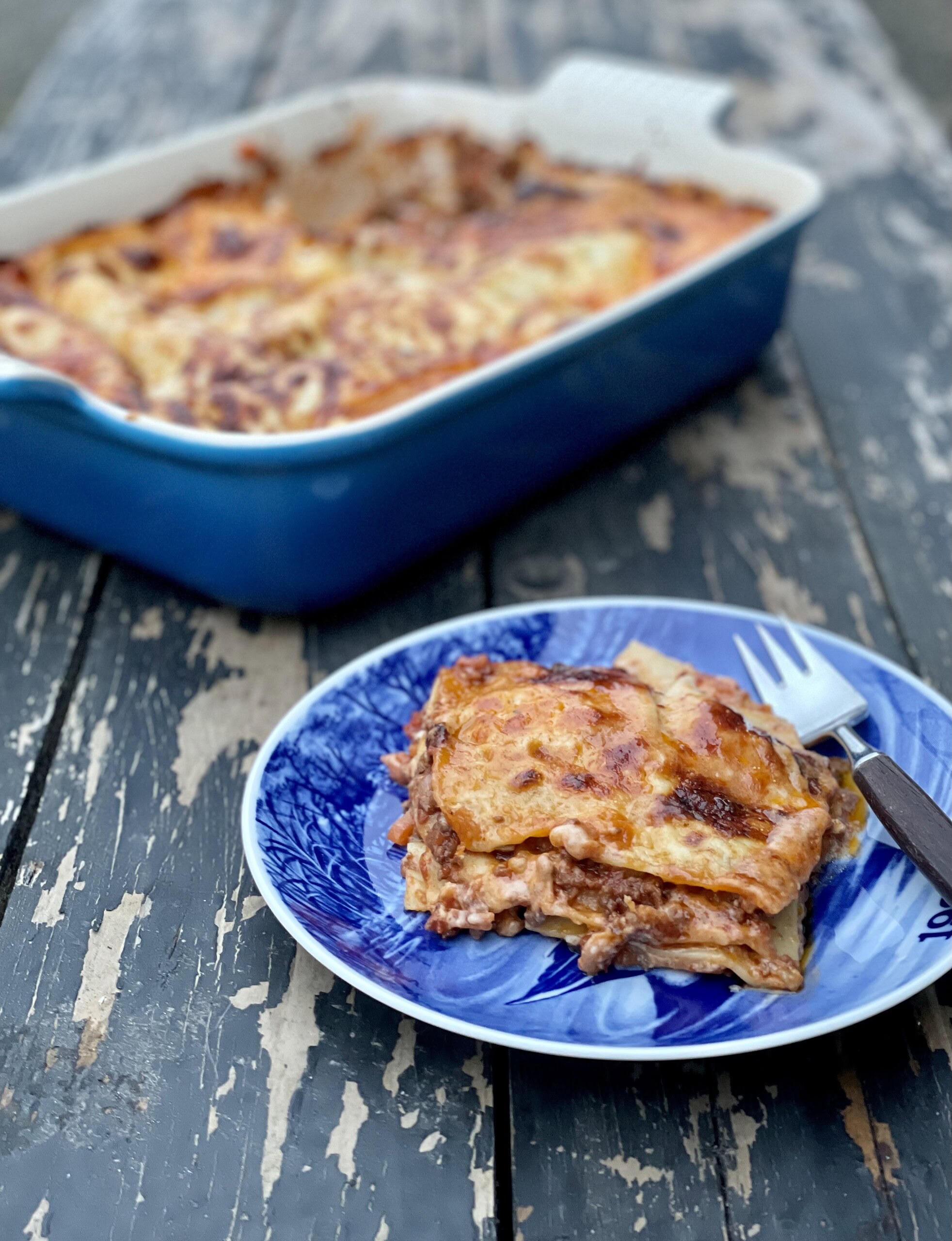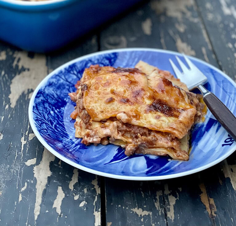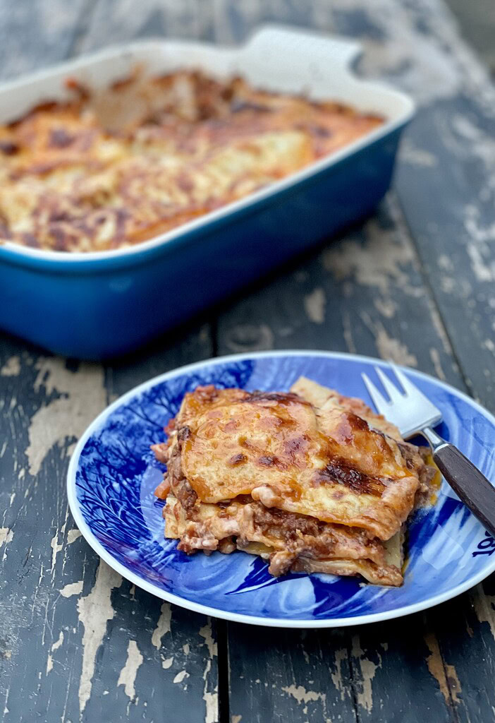 Skøn skøn lasagne – helt klart den bedste! Jeg blandet oksekød og svin det giver rigtig meget smag og bruger hvidvin i stedet for rødvin det gør den lidt “lettere” men sååååå god! Eneste lasagne jeg gider at spise!