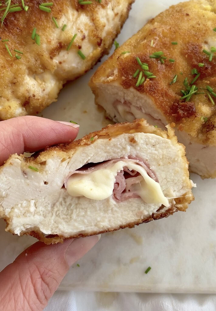 Kyllingebryst i ovn med pepperoni og mozzarella