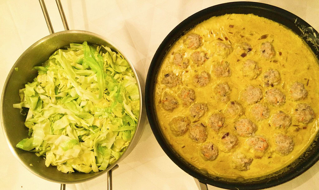 Boller i karry med lynstegt spidskål