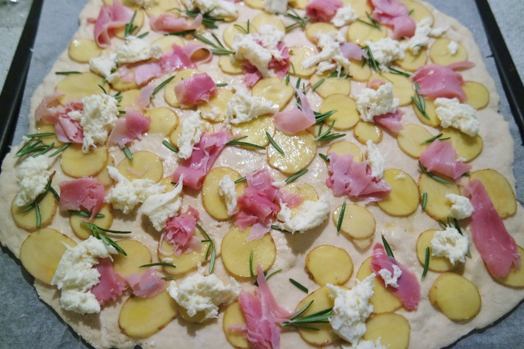 Pizza med skinke og kartfoffel