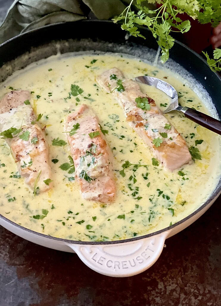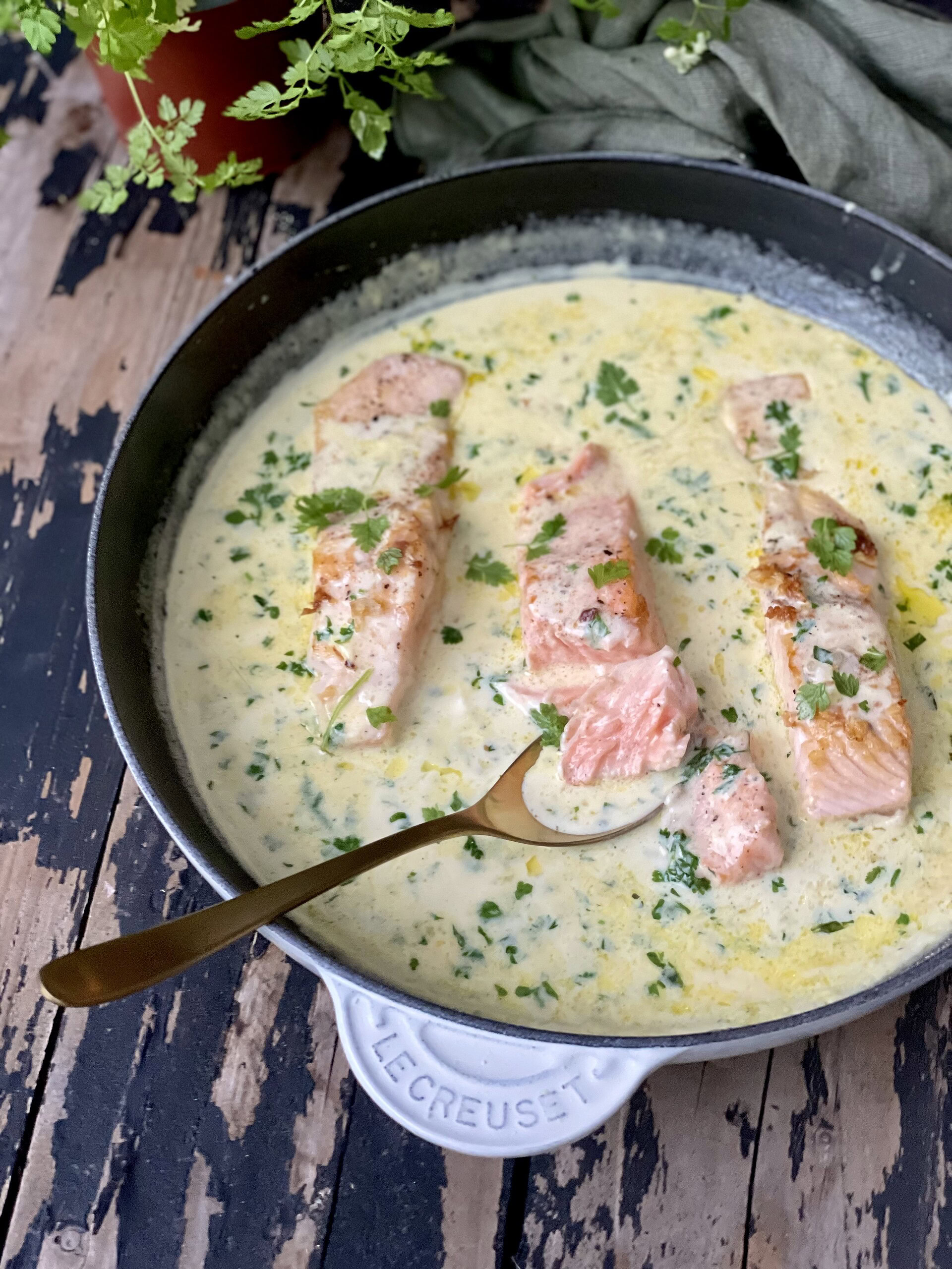 Okay, denne her ret er virkelig god. Sovsen er cremet og mild, og med et dejligt strejf af de lækre friske krydderurter.
