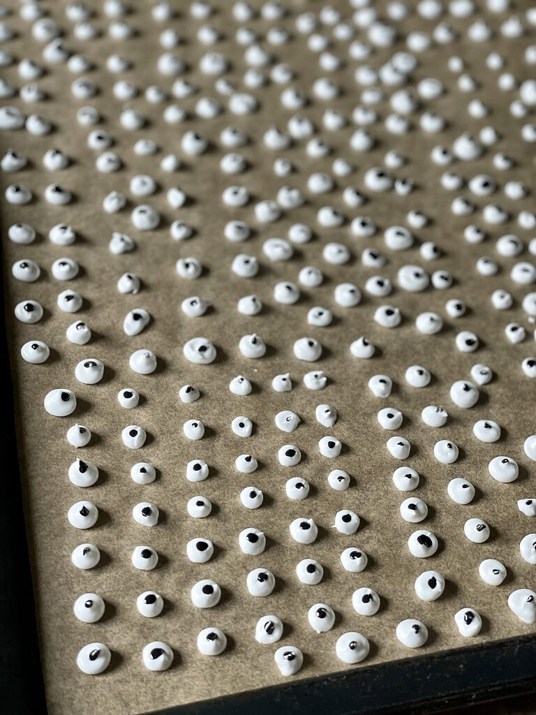 Jeg valgte derfor at kaste mig ud i at lave mine egne sukkerøjne, og det var slet ikke så svært OG bedst af det hele, skal du blot bruge æggehvide, flormelis og lidt sort farve.