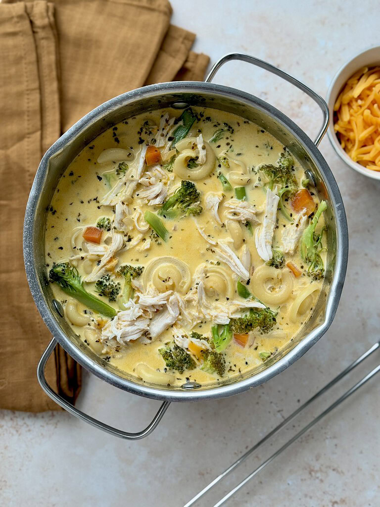 Når jeg laver suppe, som mine børn kan lide, så er de ofte lidt milde i smagen. Denne suppe er ingen undtagelse. Den er skøn fordi der også er bid fra kylling, pasta og broccoli. Så den mætter også godt i sig selv, men kan alternativt også serveres med brød til.