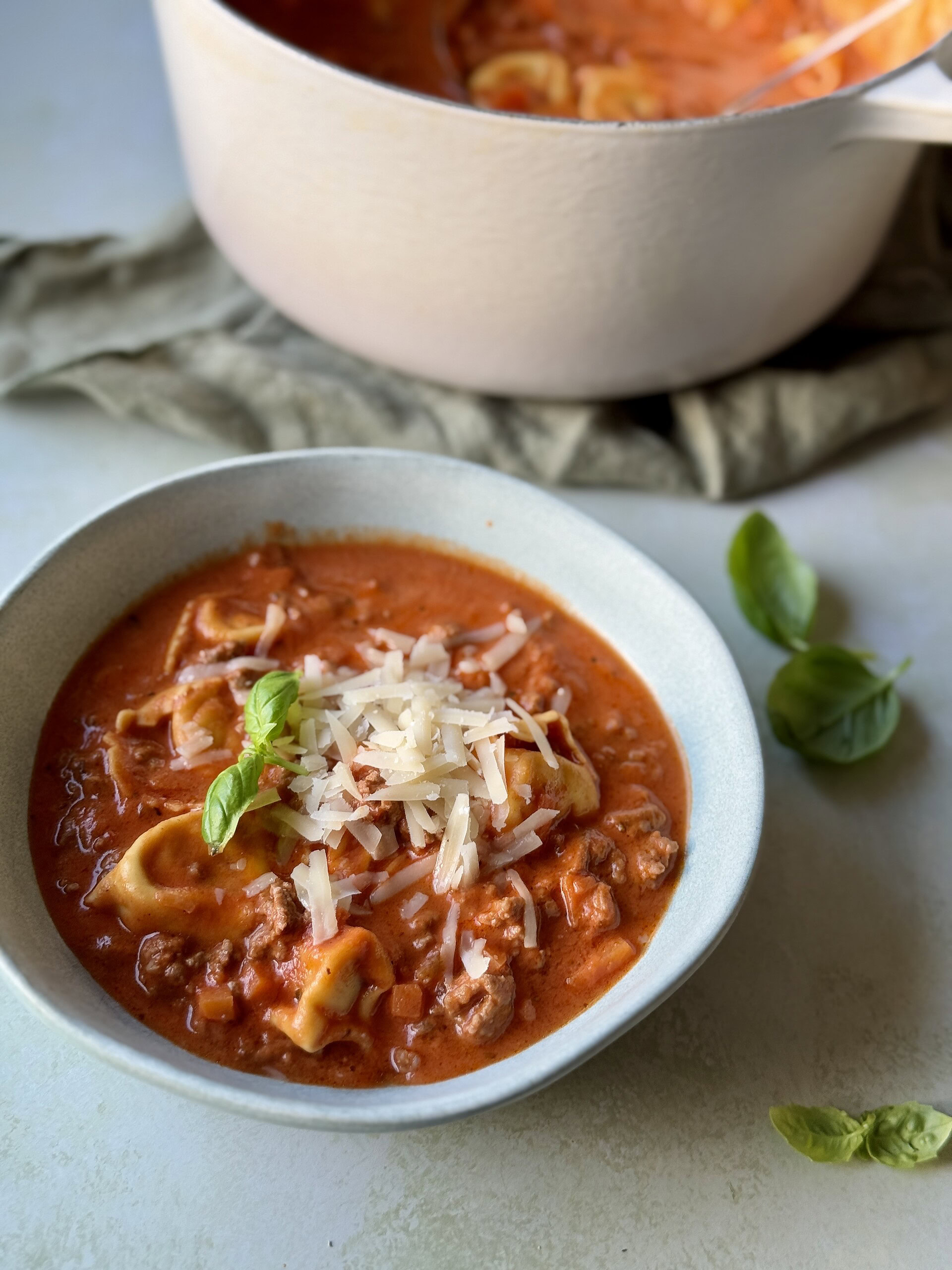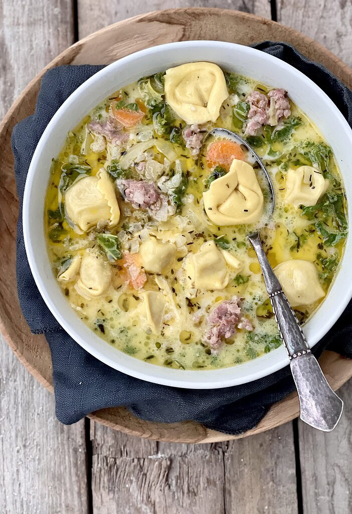 - Tag af varmen og server straks (da tortellinien vil koge videre i væsken)