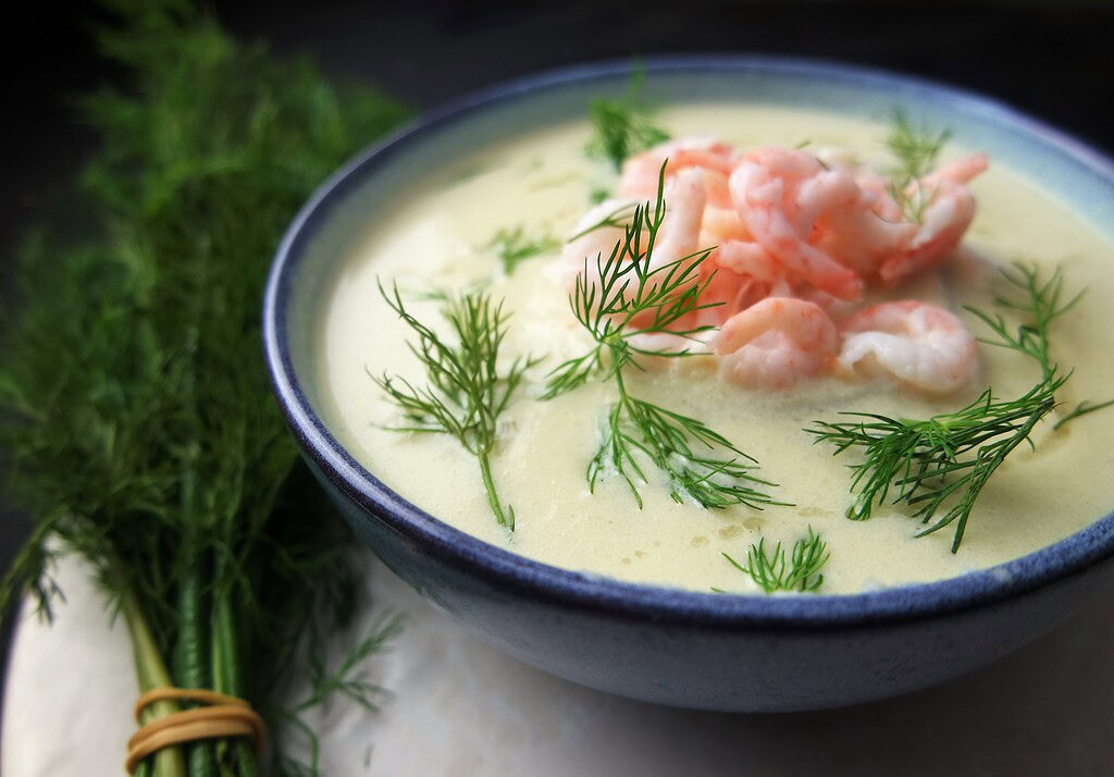 Blomkålssuppe med rejer og dild