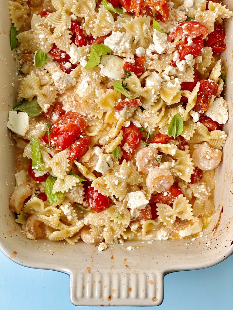 Nem pastaret med feta, tomat og tigerrejer