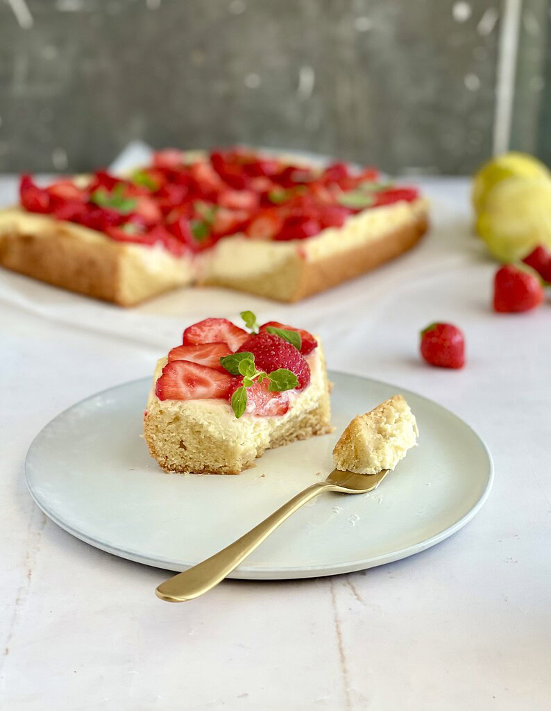 - Skyl og skær jordbærerne i tynde skiver og lig 1 skive på hver chips