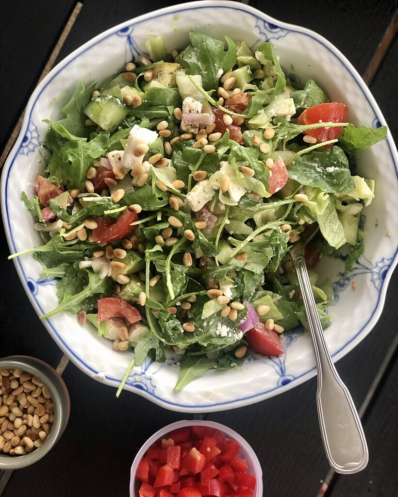 Her finder du et hav af salater til hver en årstid. Der er både fyldige og mættende salater med kål og de mere friske sommersalater med eks jordbær.