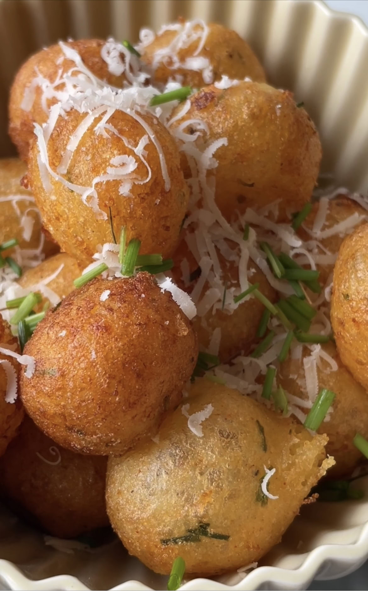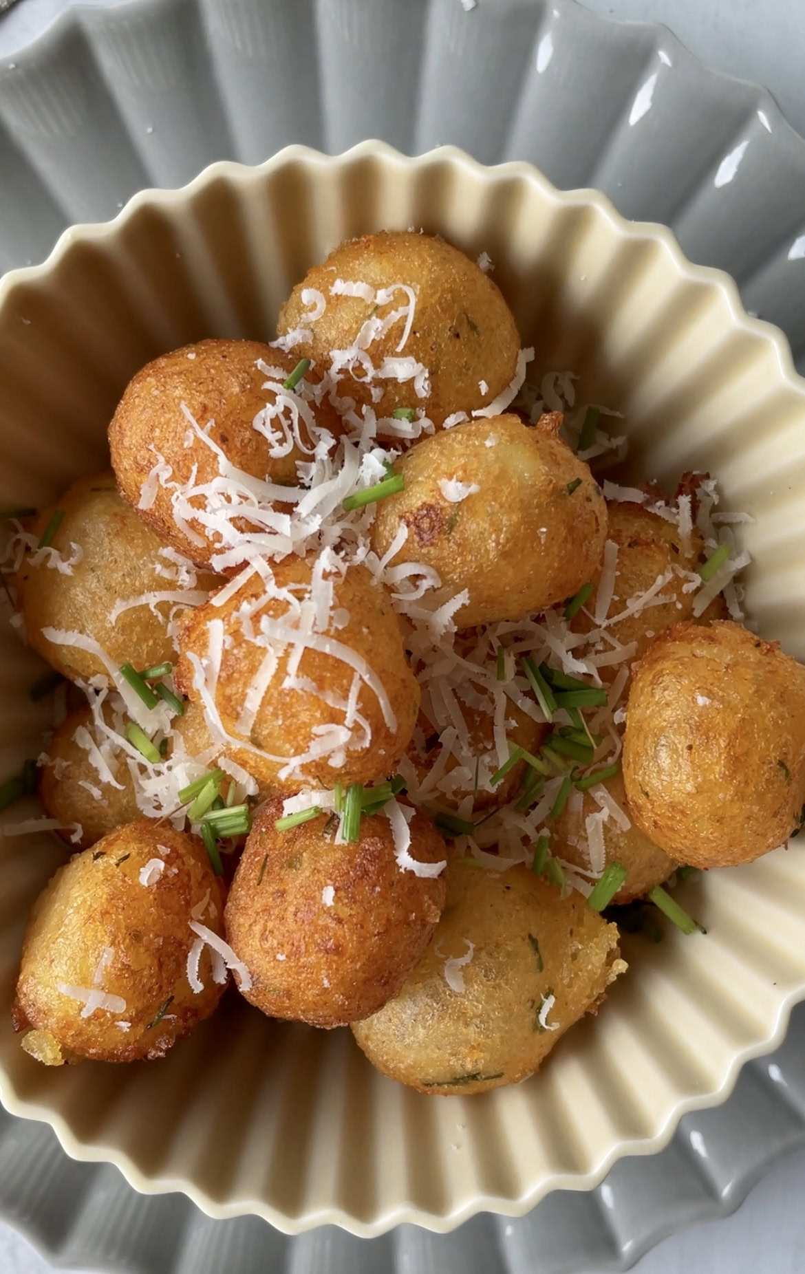 De her små kartoffelkugler blev virkelig lækre. De skal serveres straks imens de er lune og sprøde. Servér gerne med haydari eller chilimayo til. Geniale til tapas, snacks eller lignende.